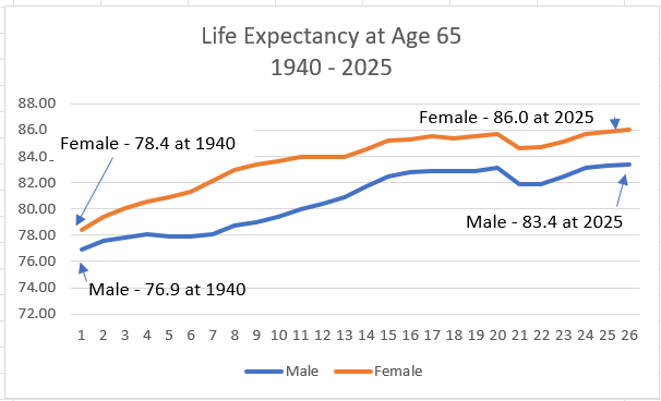 Depletion of Social Security’s trust fund cash reserves can be attributed to several key factors, beginning with the length of time benefits need to be paid to a growing number of beneficiaries. For example, since 1940 life expectancy for those reaching age 65 has grown substantially, increasing by 9.7% for females and 8.5% for males, a trend expected to continue increasing through the end of the century.